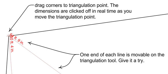 - Yard Drawing These advanced techniques help you use the full capability of your computer to quickly creating accurate yard layouts. In addition, I have included my exclusive Triangulation Tool which helps you to quickly find exact triangulated coordinates. Just move the Triangulation point with your mouse and watch the dimensions click off in real-time.